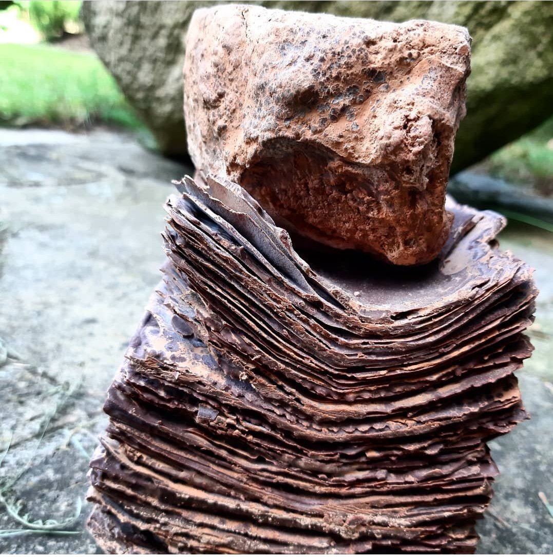 Chocolate is a versatile artistic medium and a cultural icon, but Laine-Naida saw it making flesh under natural demiurges like fire, humidity, mould, time - as well as industrial and fashion trends. It expressed caved-in figures of piety and motherhood, then suburban distress blown with shattered glass, tainted with toxic waste, wax or barbed wire. Now it expresses the glamorous heaven of commodities production.